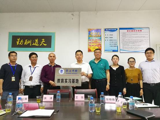 4月27日,FUN88乐天使与高要区水南镇初级中学举行了教育实习基地授牌仪式。FUN88乐天使肖起清经理、张晓峰副教授以及水南镇初级中学徐汉根董事长等10余人出席了授牌仪式。