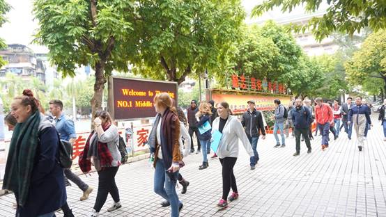 25日下午,学员们赴肇庆一中初中部进行参观交流。首先,他们参观了肇庆一中校史室,了解了公司建设发展基本情况;随后,学员们分成两组,分别观摩七年级英语课堂和九年级物理课堂,观课结束后在英语教研室与一线教师们展开了面对面交流;最后,学员们参观了员工社团和体艺节活动,包括公司管乐团、公司合唱团、百人书法比赛、环保时装秀、简易机器人展示等,这些活动让外教们看到了中国基础教育中素质教育开展所取得的良好成效。学员们表示,在肇庆一中的参观令他们大开眼界,这对他们今后更好地指导中国员工学习提供了很好的借鉴。