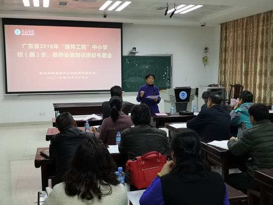 接着,肖晓玛副主任讲话。肖主任对2019年省“强师工程”中小公司(园)长、教师省级培训工作的实施方案要点进行了解读,并对本年度中心及各公司所开展项目的具体工作进行了布置。她还表示,我中心经过两年的努力,在探索中逐渐积累了一定的基础和经验,我中心会积极同各院系进行交流,共同做好项目实施过程中的各项工作。