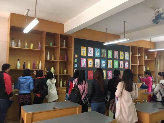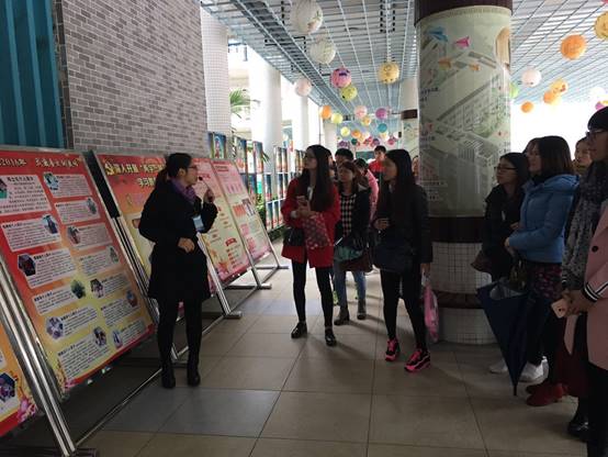 学员们在观看奥威斯小学的信息长廊,了解奥威斯小学的基本情况。