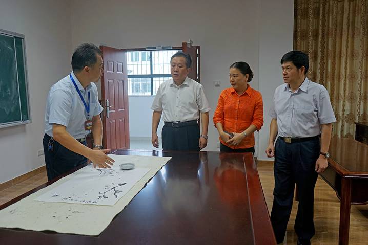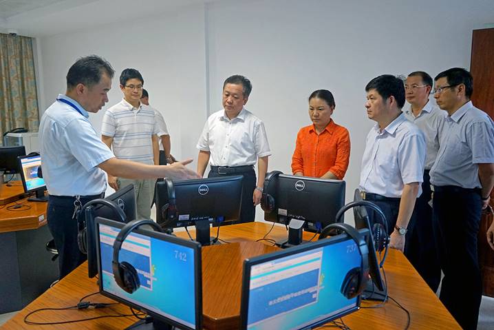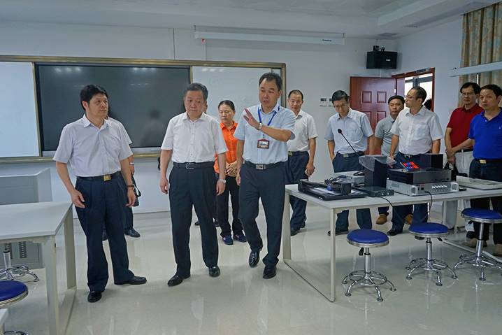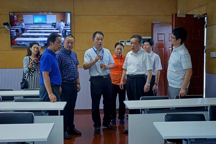 8月10日下午,广东省教育厅厅长景李虎一行莅临FUN88乐天使省级中小学教师发展中心指导工作。肇庆公司党委书记曾桓松、肇庆公司党委副书记叶峥嵘、肇庆市副市长陈宣群、肇庆市教育局局长彭银祥、FUN88乐天使两办主任朱为鸿、FUN88乐天使经理肖起清等陪同景李虎厅长一行参观了师德与传统文化室、书画训练室、普通话测试室、远程教学交互中心、教学反思与教学设计室、教师形象设计与训练室、微课录制室、智慧教室、教学新媒体实训室、教师信息能力训练室等多个功能室。