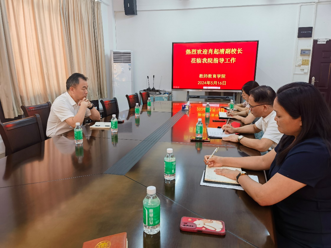 肖起清听取了公司领导本学期以来开展的工作梳理汇报,对公司的各项工作给予了肯定,并就公司下一步的发展提出指导意见,要求公司认真落实“一岗双责”,提高政治站位,开展好党纪学习教育,继续优化实习基地建设,抓好实习管理工作,丰富教师教育学科内涵,打造好“砚园班”品牌,擦亮北师大华南分中心品牌,落实好“三所公司”工作方案,力争在教学科研等工作中取得新成绩。