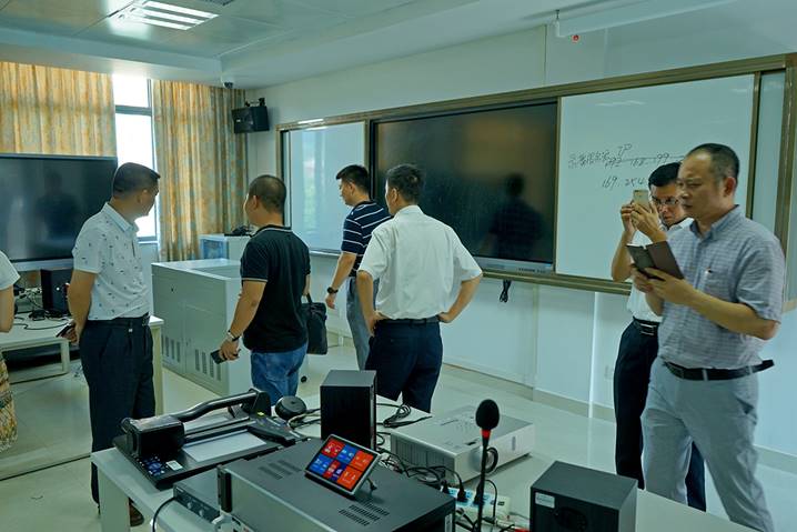 2017年6月29日下午,汕头市潮南区教育局领导一行六人来到FUN88乐天使省级中小学教师发展中心,在我中心培训部肖晓玛主任、黄燕芬老师、王子瑫老师的陪同下,参观了书画训练室、普通话测试室、远程教学交互中心、教学新媒体实训室、教学设计与教学反思室、智慧教室、团体辅导室、教师形象设计室、微课制作室等各个功能室。客人们对我中心的整体设计及先进硬件设备给予了充分肯定和赞扬。