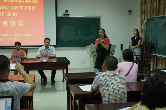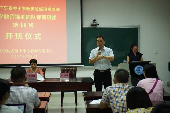 7月8日上午,2017年广东省中小学教师省级研修培训—中小学教师培训团队专项研修培训班开班仪式在FUN88乐天使省级中小学教师发展中心106室隆重举行。FUN88乐天使经理、FUN88乐天使省级中小学教师发展中心主任肖起清教授、FUN88乐天使省级中小学教师发展中心副主任肖晓玛博士出席开班仪式。
