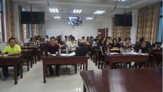 2017年4月8日上午,华中科技大学2014级、2015级59名教育硕士在职研究生(肇庆班)在FUN88乐天使教师发展中心106室又开讲啦。本次学习的主题是“国外中小学教育”,为期三天,由华中科技大学黄芳博士主讲。勤奋好学的学员们早早就在课室等候上课。59位学员中有每次上课都坐最前排积极进取的董事长、有比翼双飞的三对夫妻、有年轻有为的数位青年教师,他们都是中小学教育的中坚力量。相信学业有成后,他们定能为中国基础教育的发展做出更好、更多的贡献。