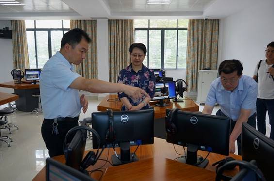 肖起清经理向到访领导汇报了公司省级中小学教师发展中心的办学情况,并表示中心将在新的形势和政策下,继续响应深化教师教育改革的号召,把对一线中小学教师的培训工作落到实处,办出水平、办出特色。期间,双方还就中小学教师培训有关工作开展交流。随后,和董事长、彭局长、朱主任和肖经理等陪同客人参观了教师发展中心多个功能室,详细介绍了主要功能室的建设和使用情况。