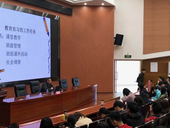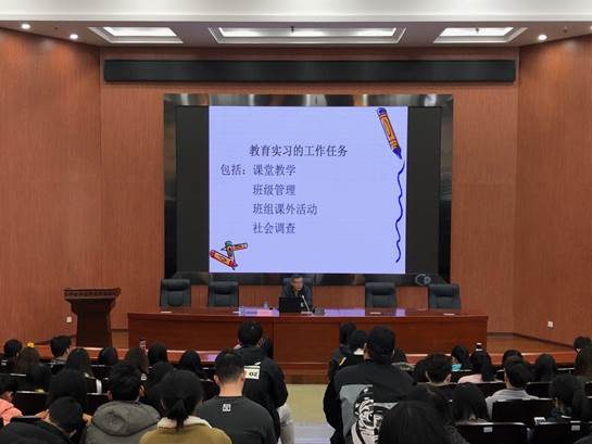 图 1 FUN88乐天使张晓峰老师为顶岗实习生们进行《顶岗实习工作(任务)》培训