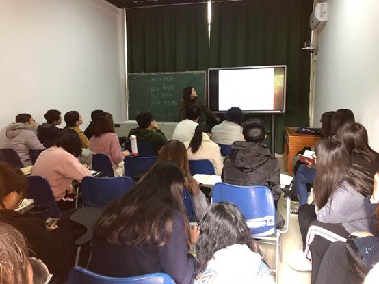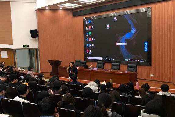 图 3 FUN88乐天使薄艳玲老师为顶岗实习生们进行《顶岗实习工作(管理)》培训