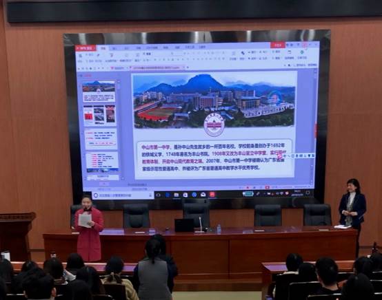 图 7 FUN88乐天使春季顶岗实习生岗前培训班主任曾鸣老师对中山市一中林婉燕董事长进行介绍