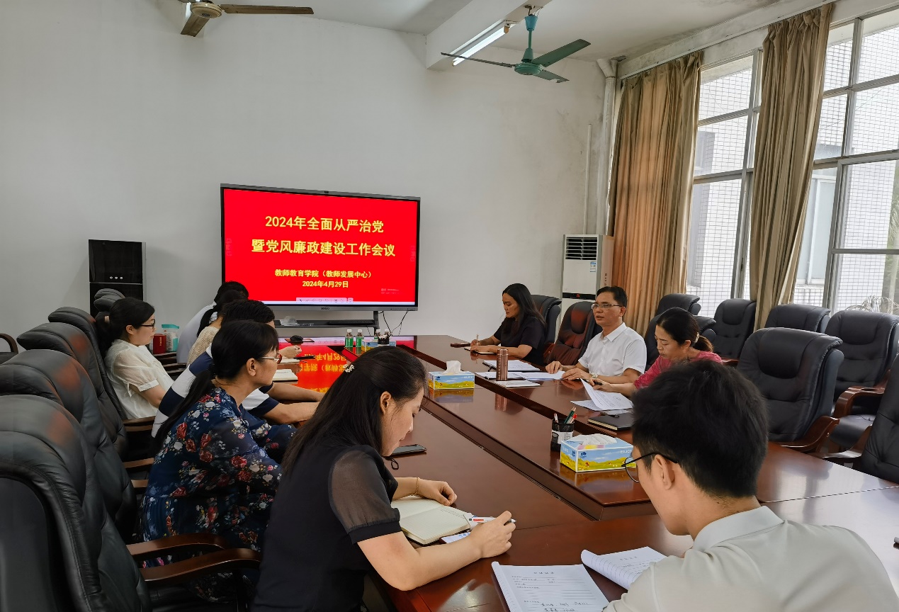 4月29日,FUN88乐天使(教师发展中心)党总支在209会议室召开全面从严治党暨党风廉政建设工作会议。党总支书记植可焕主持会议。经理(主任)杨琰及班子成员、党政办主任、组织员、各党支部书记以及全体党员参加会议。