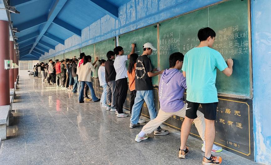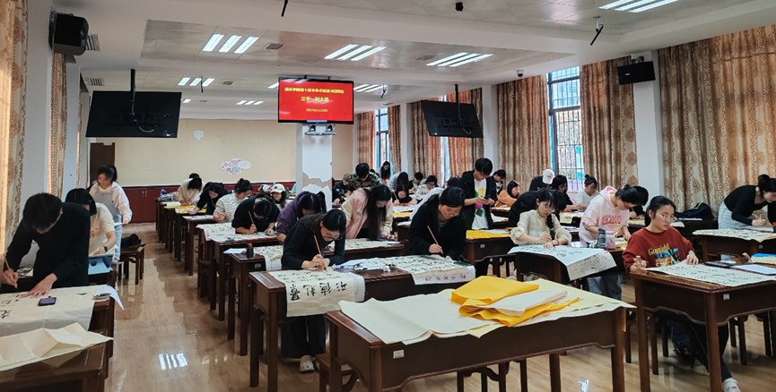 简笔字大赛要求同学们十五分钟内至少绘画一种动物、一种植物和一个人物。同学们全神贯注、认真绘画,笔端描绘的不仅仅是有形之画,更是无言之诗;硬笔字比赛内容是用楷书书写«沁园春·雪》,学员们以才华勾勒,用笔锋彰显风采,认真书写,笔画间尽显对文化的崇敬和对教师职业的敬畏;在毛笔字比赛中,同学们展纸挥毫,点墨运笔,诠释了中华优秀传统文化的魅力;粉笔字传递的不仅是知识,更是一种情感和态度,写好粉笔字,是师范生对教育事业热爱的具体表现,也是传承文化、培育下一代的使命所在,粉笔字大赛中同学们在版面设计上各显神通,将书写能力和绘画功底巧妙结合,完成了一幅幅充满特色的作品。