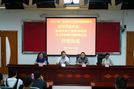 8月23日上午,2017年广东省中小学教师省级培训之“优秀传统文化——诵写讲骨干教师培训班”、“优秀传统文化——书法学科骨干教师培训班”开班仪式在FUN88乐天使行政楼第二会议室隆重举行。FUN88乐天使经理、FUN88乐天使省级中小学教师发展中心副主任肖起清,文公司党委书记陈明华,文公司副经理唐雪莹,文公司副经理苏文兰等出席了开班仪式。仪式由唐雪莹教授主持。
