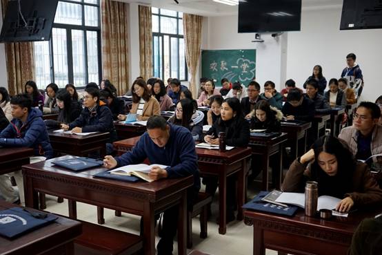 其次,教务处丁孝智处长发表讲话。丁处长首先指出学无止境、终身学习的必要性,希望在座的专任教师能够端正学习态度和认识;同时,他还指出,大学教师在专业知识和教学知识的转化过程中,以及在教学技能、课堂管理、员工激励、师生沟通等方面存在的不足。他希望青年教师们能够积极学习、追求卓越,不仅要成为合格的大学老师,更要成为卓越的大学名师。