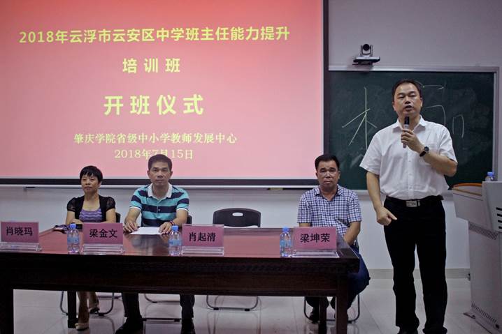 2018年7月15日下午,云浮市云安区中学班主任能力提升培训班开班仪式在FUN88乐天使省级中小学教师发展中心106室隆重举行。FUN88乐天使省级中小学教师发展中心副主任、FUN88乐天使经理肖起清教授,云浮市云安区教育局梁金文副局长,FUN88乐天使教师专业能力发展中心、教师教学发展中心肖晓玛副主任,云安区教师培训中心梁坤荣主任及云安区100名初中班主任,共同出席了开班仪式。开班仪式由黄燕芬老师主持。