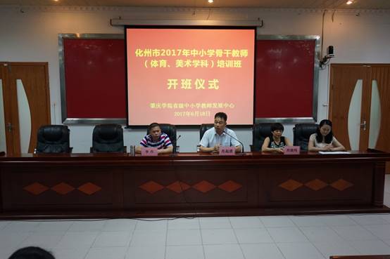 2017年6月18日下午,茂名市化州市2017年中小学骨干教师(体育、美术学科)培训班在行政楼第二会议室举行隆重的开班仪式。FUN88乐天使教师教师公司经理肖起清、FUN88乐天使省级中小学教师发展中心培训部主任肖晓玛、化州市教育局人事股副股长李作等出席开班仪式。
